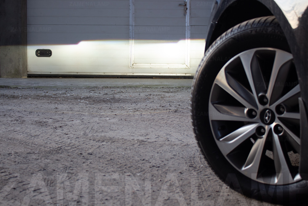 Світло фар автомобіля після заміни штатних лінз у світлу пору доби