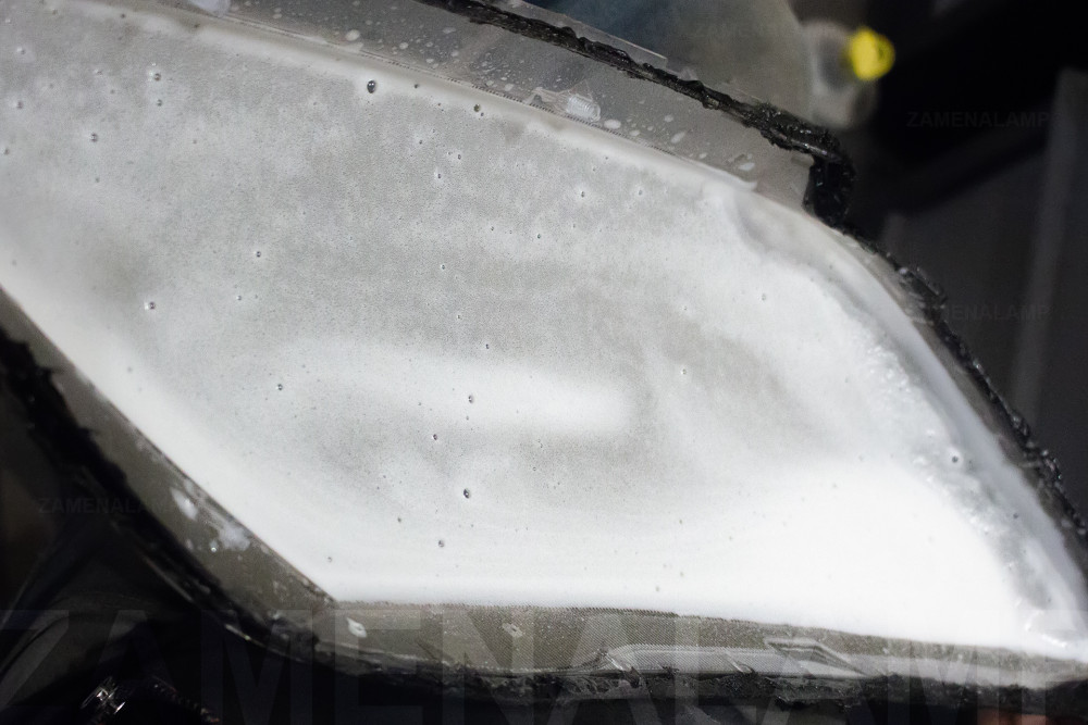 Процес миття скла фари з внутрішньої сторони скла