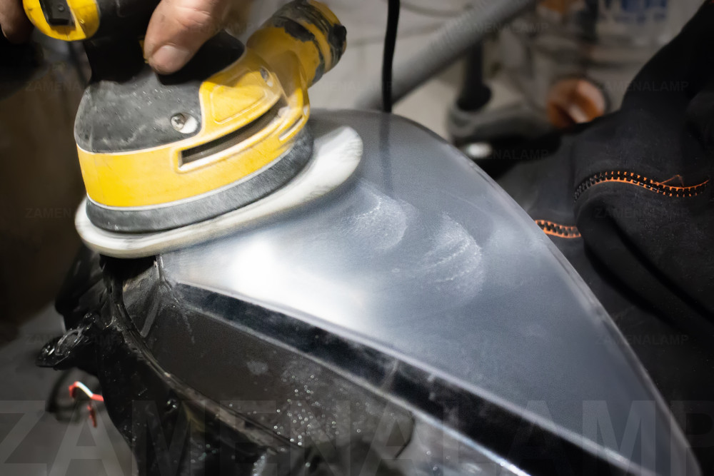 Процес шліфування скла фари та підготовка по покриття "броне" плівкою.