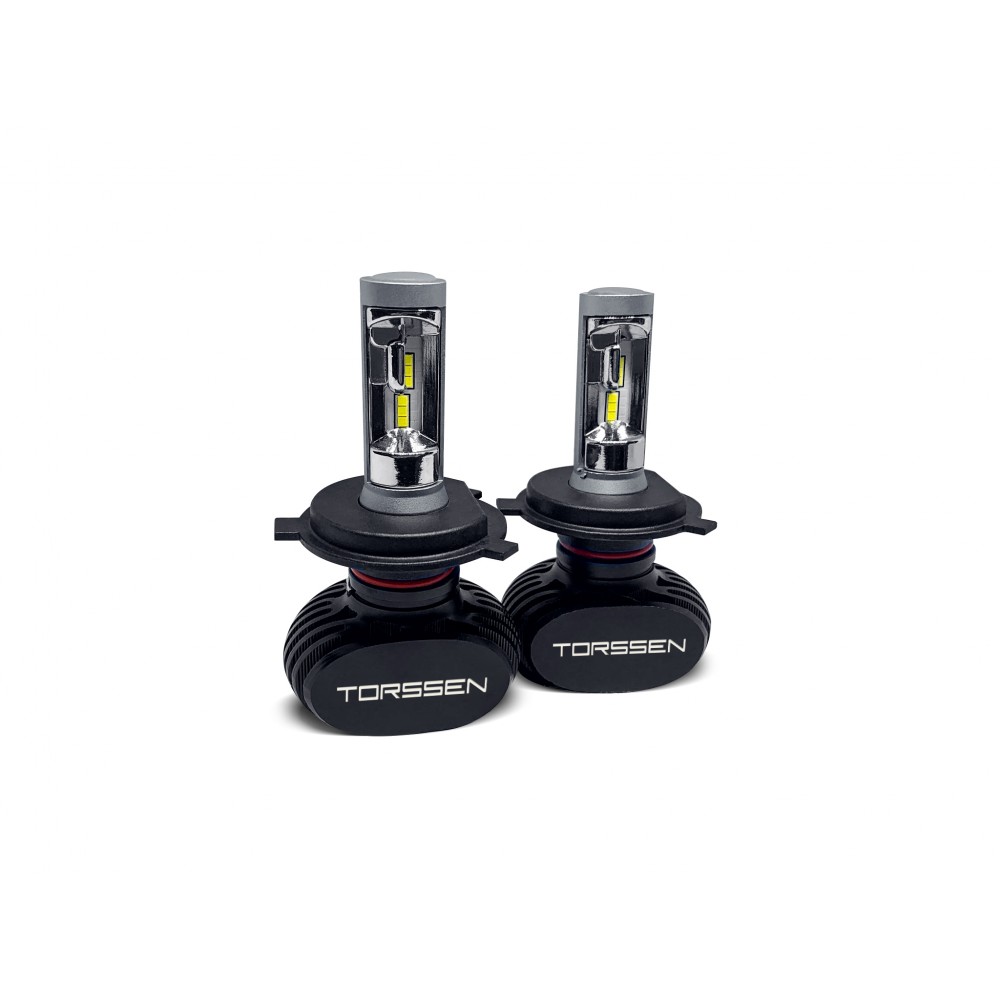 Комплект світлодіодних LED ламп Torssen light - це світлодіодна лампа нового покоління, яка може бути чудовою заміною для ксенону або галогенових ламп. Встановлення ламп не вимагає додаткових блоків розпалювання та навичок електрика, заміна проводиться самостійно згідно з інструкцією, а розмір відповідає стандартам посадкових місць у фарі. Корпус виготовлений з авіаційного алюмінію 6063, це легкий міцний сплав із гарною теплопровідністю. Система охолодження пасивна, представлена радіатором з високою площею тепловідведення та підвищеною тепловіддачею. Джерелом світла є потужні корейські світлодіоди CSP, вони яскраві та довгострокові. У цій моделі стоять шість діодів, вони розташовані на тому місці, де в галогенових лампах знаходиться нитка розжарювання, тому дають хорошу світлотіньову межу. Потужність світлового потоку становить 4000 лм. Колірна температура 6500 К, це означає, що лампи дають дуже тепле біле світло. Робоча напруга 12 В. Потужність 25 Вт. Водонепроникність лампи на рівні IP68, що означає повне непроникнення пилу і може повністю занурюватися у воду, в робочому стані, на глибину більш як 1 метру. Робоча температура від -40 до +80°. Термін служби світлодіодів понад 25 000 годин. У комплектацію входить дві лампи, гарантійний талон та інструкція з експлуатації.