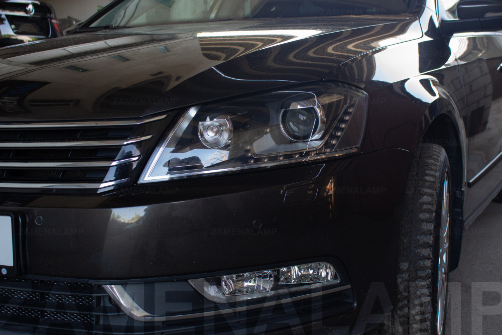 VOLKSWAGEN PASSAT B7 з 2010 по 2014 рік заміна штатних біксенонових лінз Valeo на Комплект біксенонових лінз Hella 5 Blue