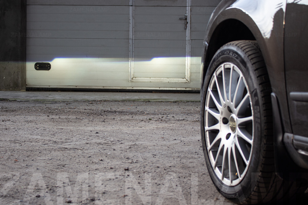 Світло автомобіля фар після заміни штатних лінз у світлу пору доби