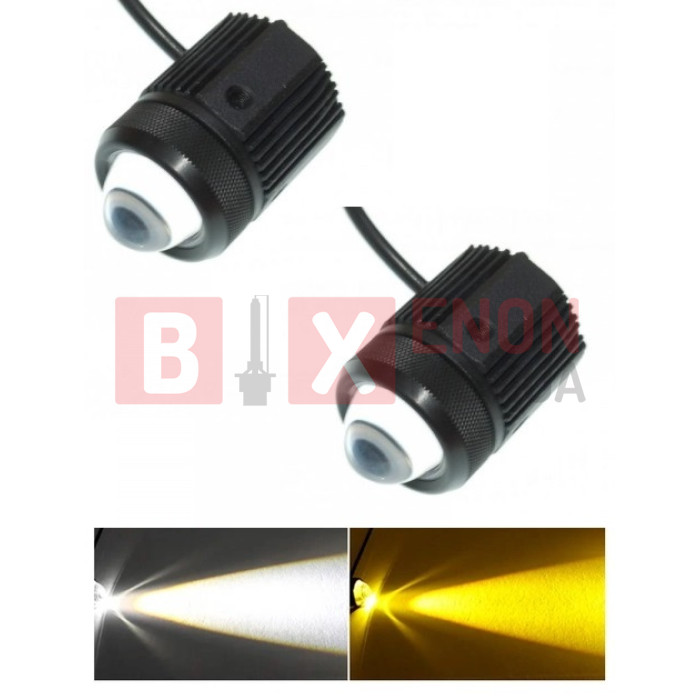 - Працює у 2 режимах — біле ближнє світло та жовте протитуманне світло.