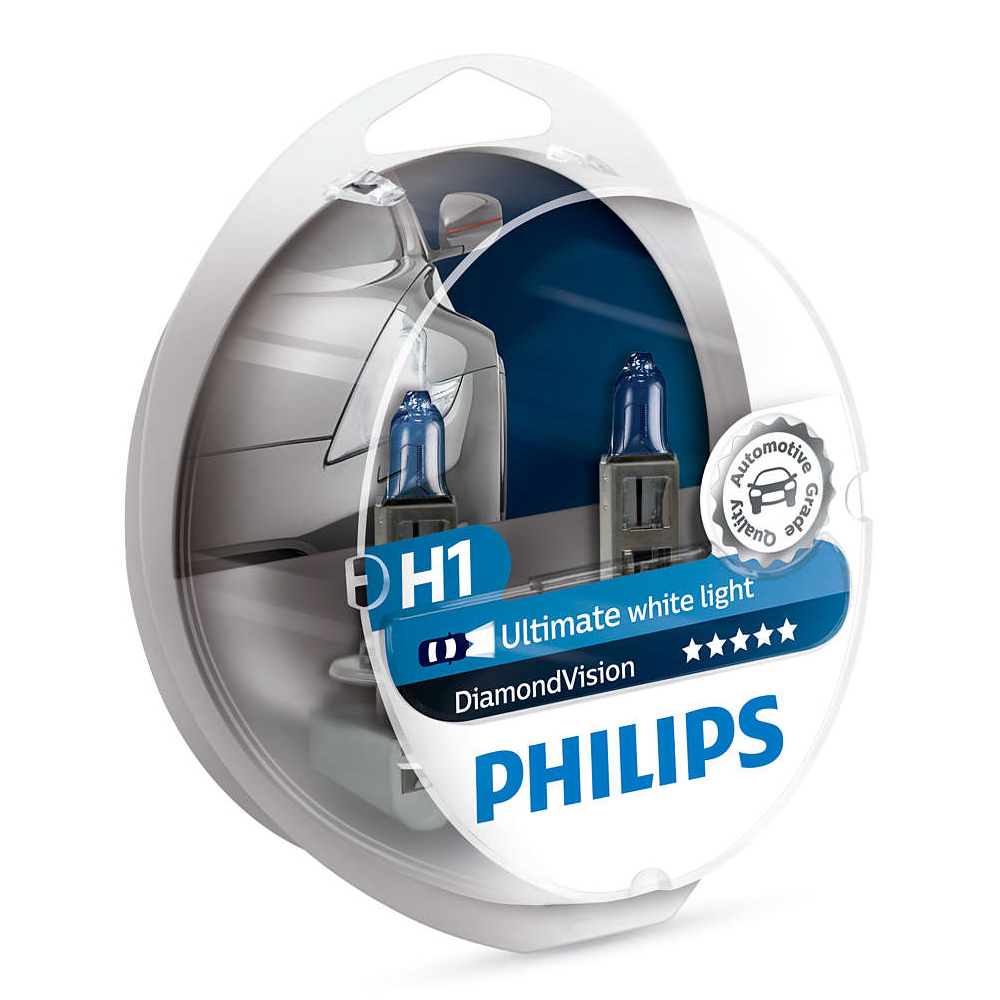 Галогенна лампа PHILIPS 12258DVS2 H1 Diamond Vision - лампа призначена для використання в ближньому, дальньому та протитуманному освітленні автомобіля. Лампа забезпечує яскравий білий відтінок світіння та дає більше освітлення на дорозі, ніж стандартна галогенна лампа. Це всепогодна лампа, яка чудово розкриє свій потенціал в умовах поганої видимості та складних дорожніх умов. Галогенна лампа PHILIPS 12258DVS2 H1 Diamond Vision відрізняється високою стійкістю до перепадів температур та вібрації, що унеможливлює передчасне перегорання.
