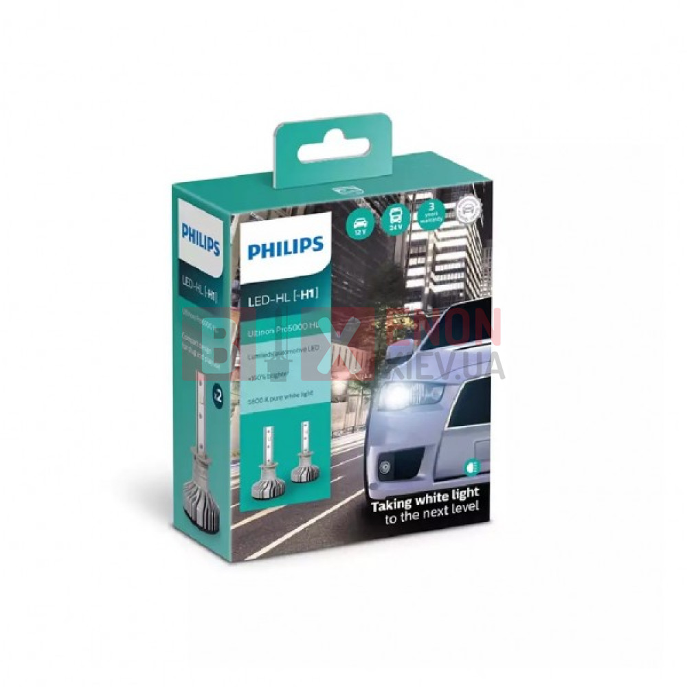 Комплект світлодіодних ламп PHILIPS H1 11258U50CWX2 LED Ultinon Pro5000 +160% 12/24V - це LED лампи для основного освітлення в автомобіля, підійде для автомобілістів, які хочуть отримати хороший якісний комплект світлодіодних ламп з максимальним ефектом світла. Світлодіодна лампа Ultinon Pro5000 +160% легко встановлюються та підходять для заміни стандартних галогенових ламп з більшістю цоколями. Корпус світлодіодної лампи виконаний зі сплаву алюмінію, що забезпечують високоефективне відведення тепла, продовжує термін служби ламп. У виробництві ламп дотримані всі стандарти світлотіньової межі та посадкового місця кріплення лампи у фарі.
