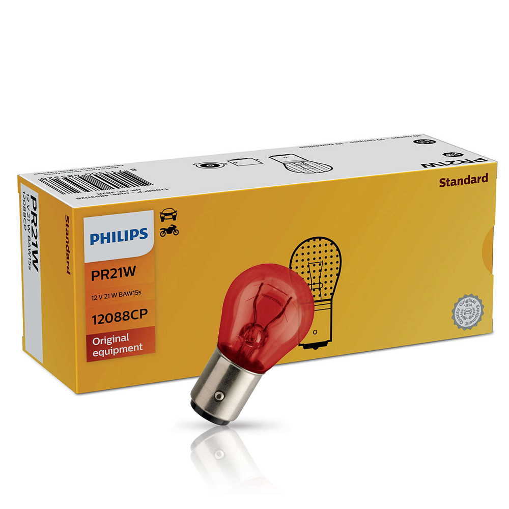 Галогенна лампа Philips PR21W Vision Red 12088CP - лампа призначена для використання в сигнальному або салонному освітленні автомобіля. Лампа забезпечує яскравий жовтий відтінок світіння.