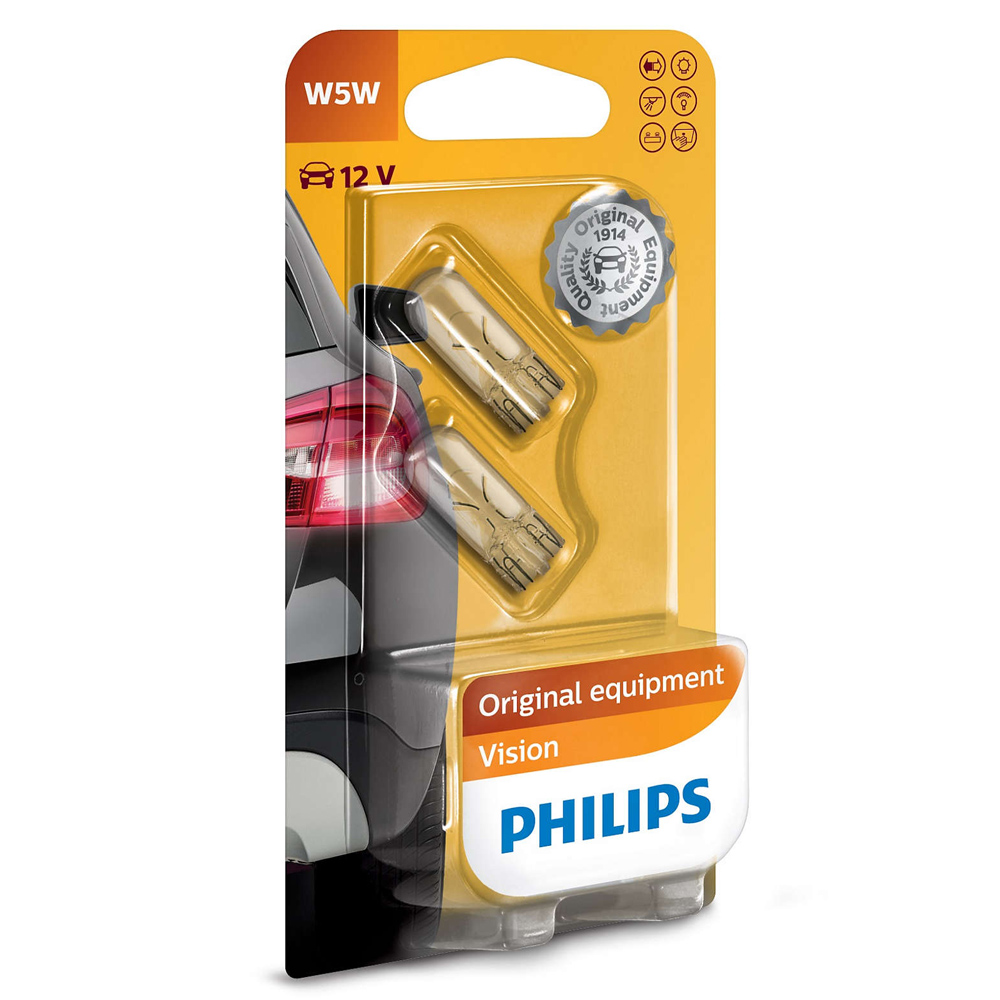 Галогенна лампа Philips W5W Vision 12961B2 - лампа призначена для використання в сигнальному або салонному освітленні автомобіля. Лампа забезпечує яскравий жовтий відтінок світіння.