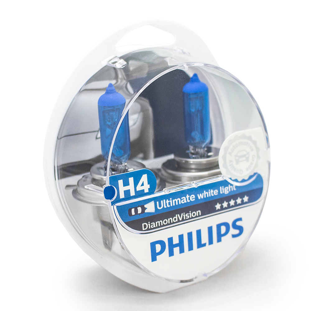 Галогенна лампа PHILIPS 12342DVSP H4 Diamond Vision - лампа призначена для використання в ближньому та дальньому освітленні автомобіля. Лампа забезпечує яскравий білий відтінок світіння та дає більше освітлення на дорозі, ніж стандартна галогенна лампа. Це всепогодна лампа, яка чудово розкриє свій потенціал в умовах поганої видимості та складних дорожніх умов. Галогенна лампа PHILIPS 12342DVSP H4 Diamond Vision відрізняється високою стійкістю до перепадів температур та вібрації, що унеможливлює передчасне перегорання.