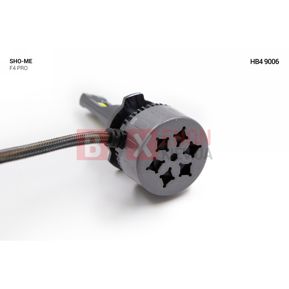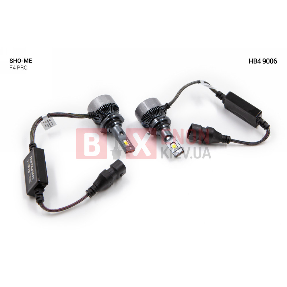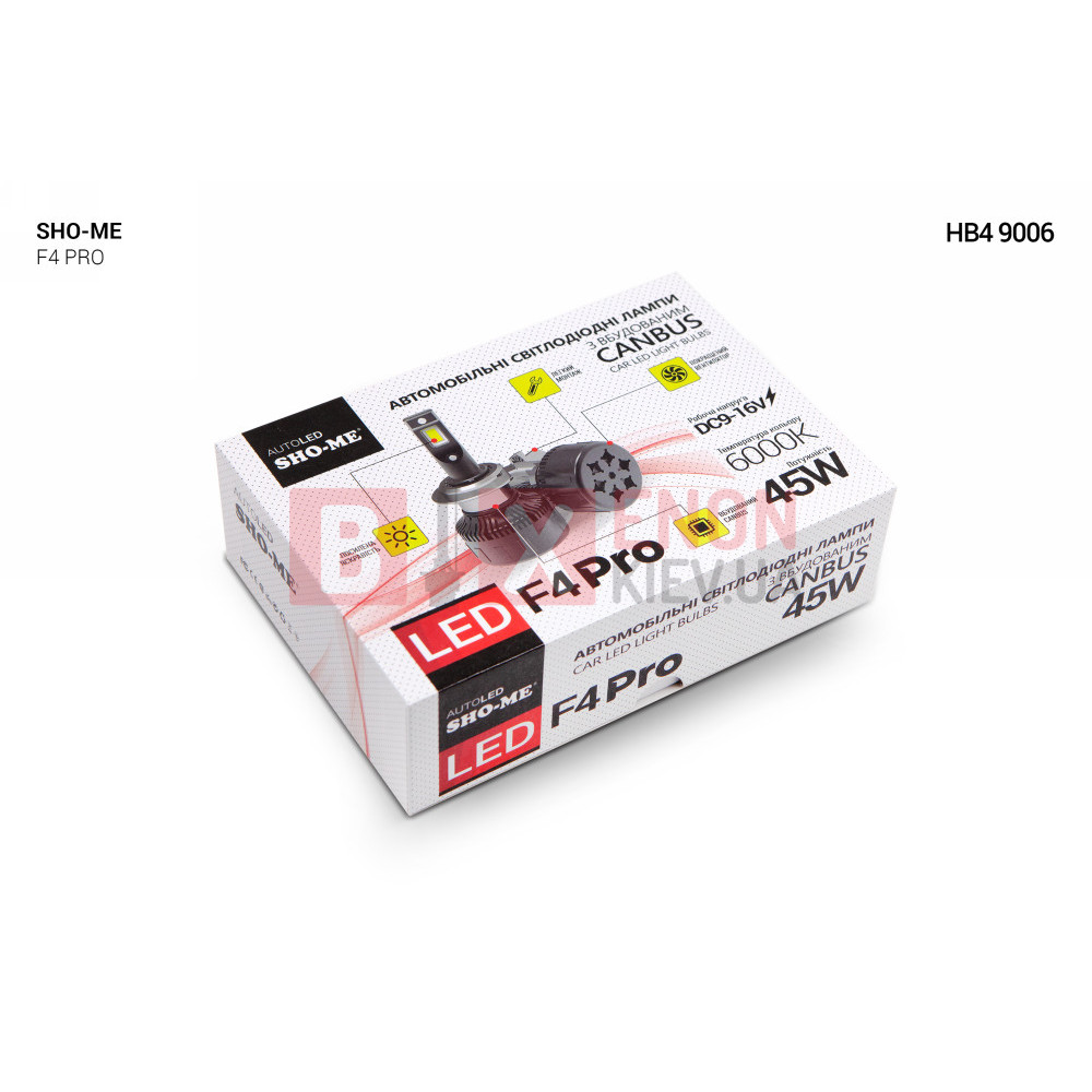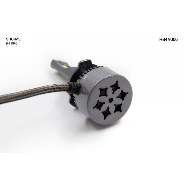 Основні особливості автомобільних світлодіодних ламп Sho-Me F4 Pro 9006 HB4: - компактні розміри, що вміщаються в будь-яку оптику; - сучасні LED кристали 3570 CSP Chip із високим коефіцієнтом потужності; - Точна світлотіньова межа, для захисту від засліплення зустрічних машин; - Термін експлуатації понад 50000 годин.