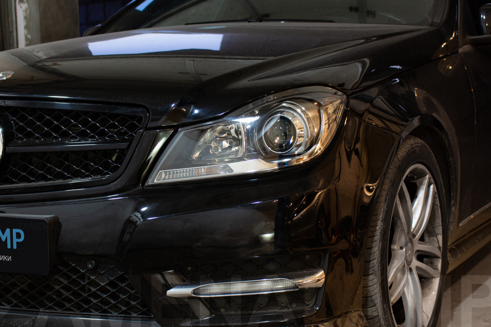 Для прикладу з Нашими партнерами з "ЗамінаЛамп" встановили даний комплект лінз у рефлекторну оптику автомобіля MERCEDES-BENZ W204 з 2011 по 2015 рік Рестайлінгова модель.