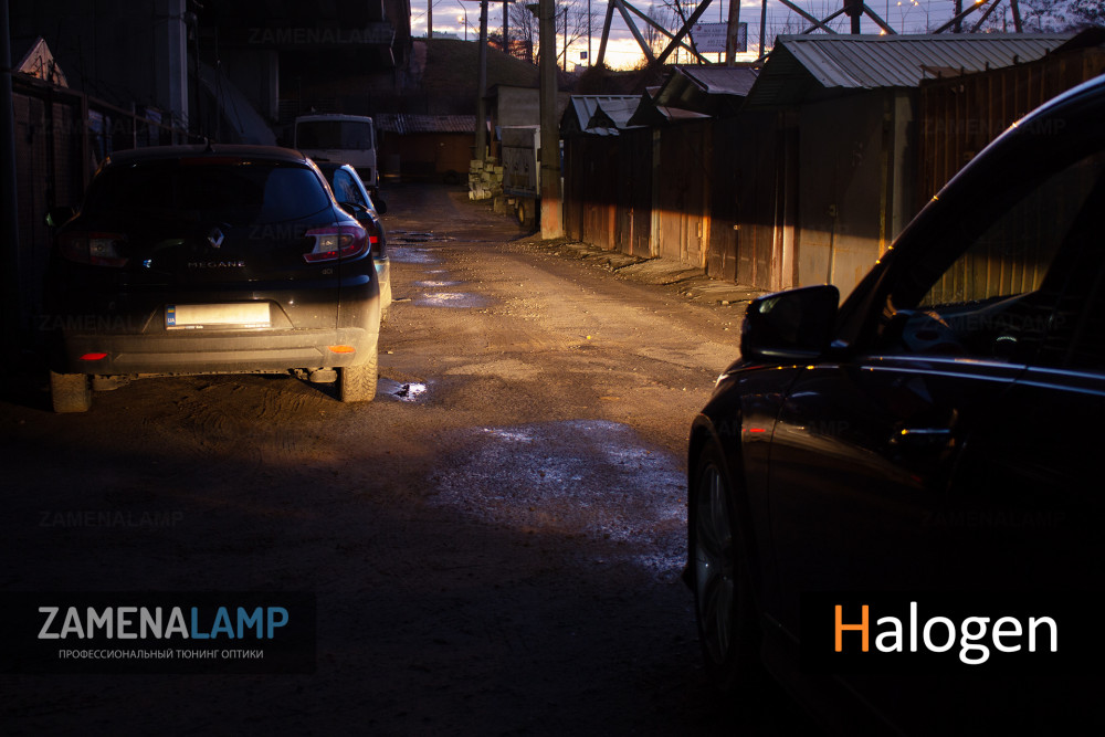 Справа штатний відбивач з галогенною лампою Н7 у заводському рефлекторі фари, ліворуч встановили Білінзи Hella 3R Universal з галогенною лампою Н7 у відбивач лінзи.