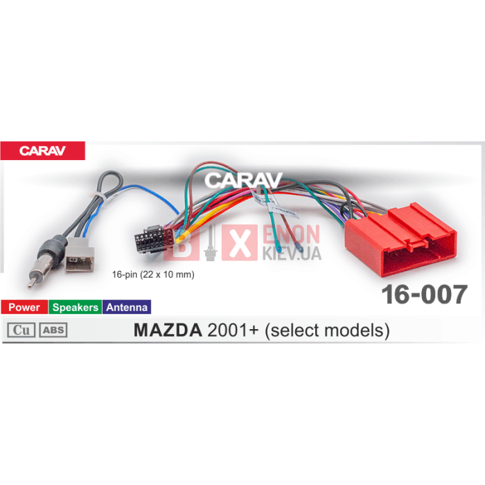 Комплект проводів для підключення 9"/10.1" ANDROID-АВТОМАГНІТОЛ (16-pin) для Mazda (вибір. моделі) Живлення + Динаміки + Кермо + USB + RCA.