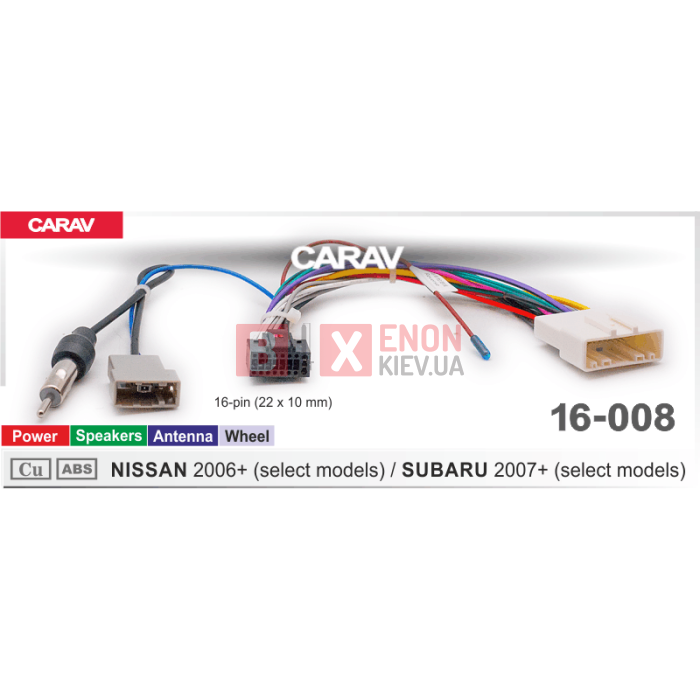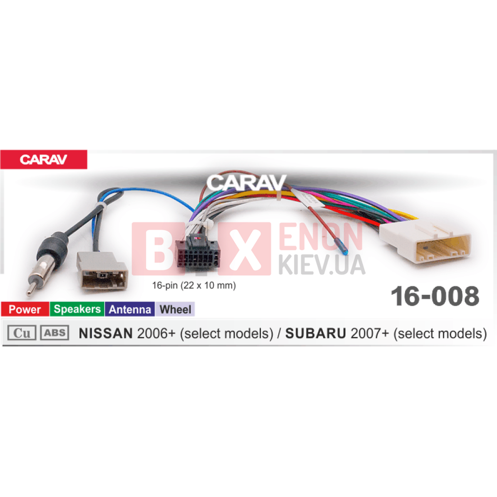 Комплект проводів для підключення "/ 10.1" ANDROID-АВТОМАГНІТОЛ (16-pin) для NISSAN 2006+ (вибір. моделі) / SUBARU 2007 + (вибір. моделі) Живлення + Динаміки + Антена + Кермо.