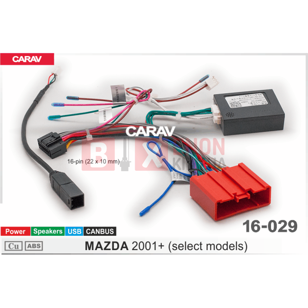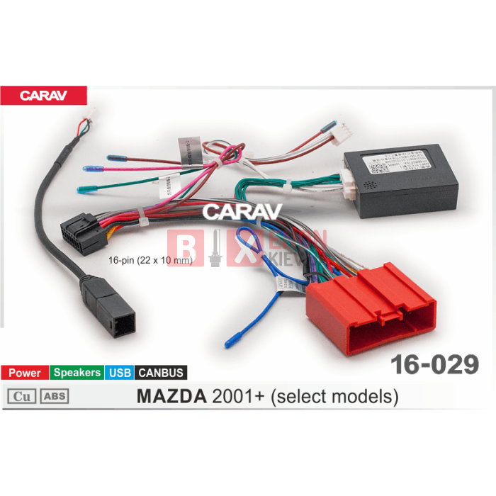 Комплект проводів для підключення 9"/10.1" ANDROID-АВТОМАГНІТОЛ (16-pin) для Mazda + Живлення + Динаміки + Антена + Камера + USB + CANBUS.