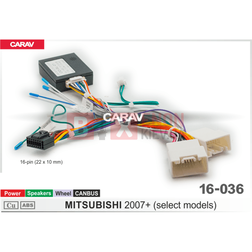 Комплект проводів для підключення 9"/10.1" ANDROID-АВТОМАГНІТОЛ (16-pin) для MITSUBISHI 2007+ (вибір. моделі) Живлення + Динаміки + Кермо + CANBUS