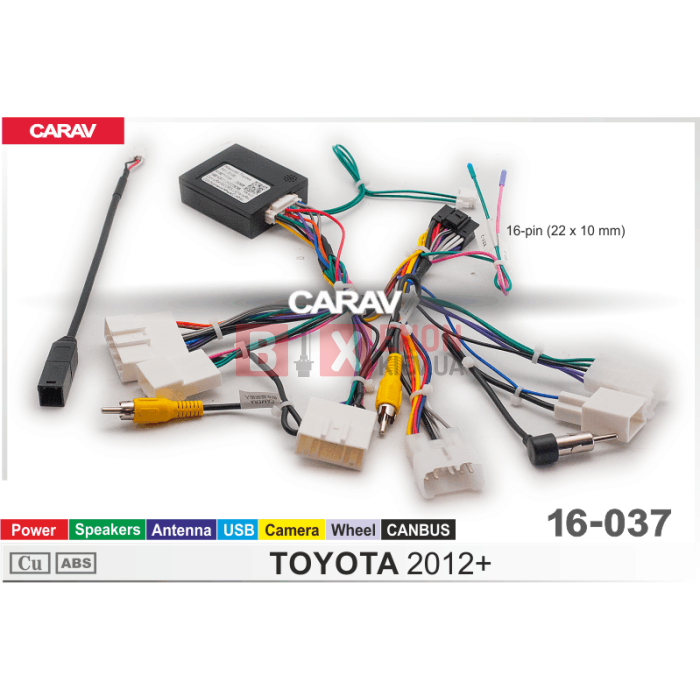 Комплект проводів для підключення 9"/10.1" ANDROID-АВТОМАГНІТОЛ (16-pin) для TOYOTA 2012 + Живлення + Динаміки + Антена + Кермо + Камера + USB + CANBUS