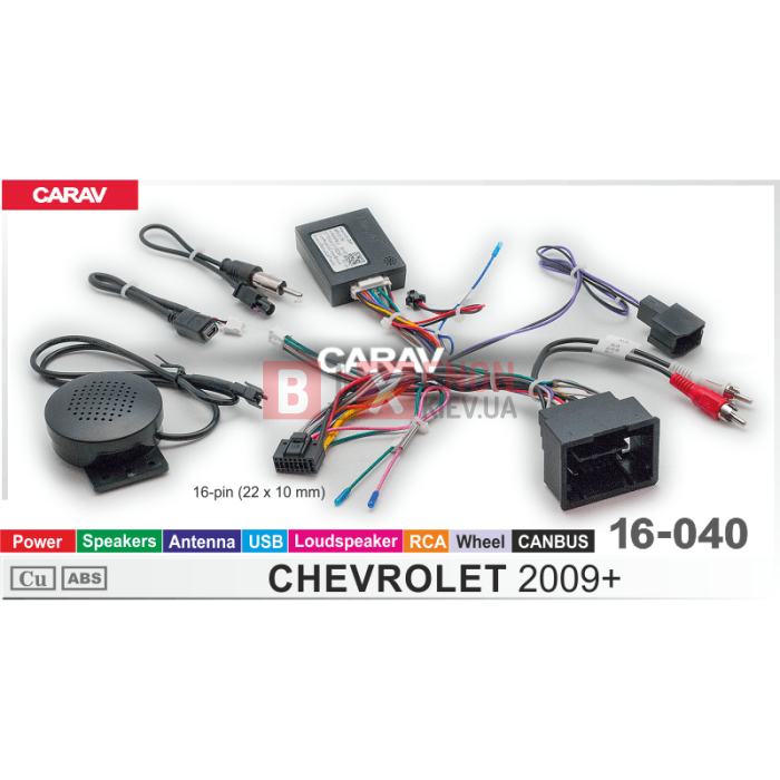 Комплект дротів для підключення 9"/10.1" ANDROID-АВТОМАГНІТОЛ (16-pin) для Chevrolet 2009+ (all with Quadlock) / Power + Speakers + Antenna + CANBUS