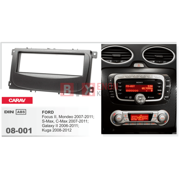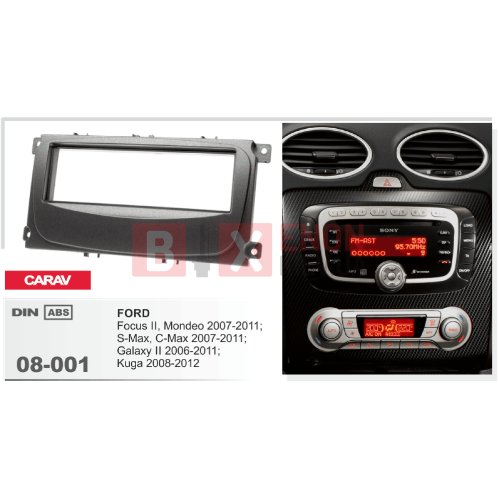 Сarav 08-001 - перехідна рамка 1 DIN для автомобілів FORD Focus II, Mondeo, S-Max, C-Max 2007-2011; Galaxy II 2006-2011; Kuga 2008-2012 (Dark Grey)