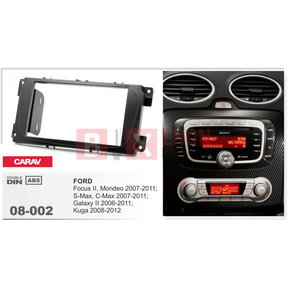 Сarav 08-002 - перехідна рамка 2 DIN для автомобілів FORD Focus II, Mondeo, S-Max, C-Max 2007-2011; Galaxy II 2006-2011; Kuga 2008-2012 (Dark Grey)