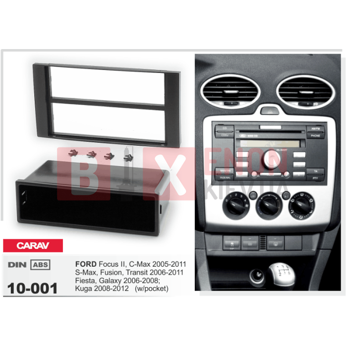 CARAV 10-001 - перехідна рамка 1 DIN для автомобілів FORD Focus II, C-Max 2005-2011; S-Max, Fusion, Transit 2006-2011; Fiesta, Galaxy 2006-2008; Kuga 2008-2012 w/pocket