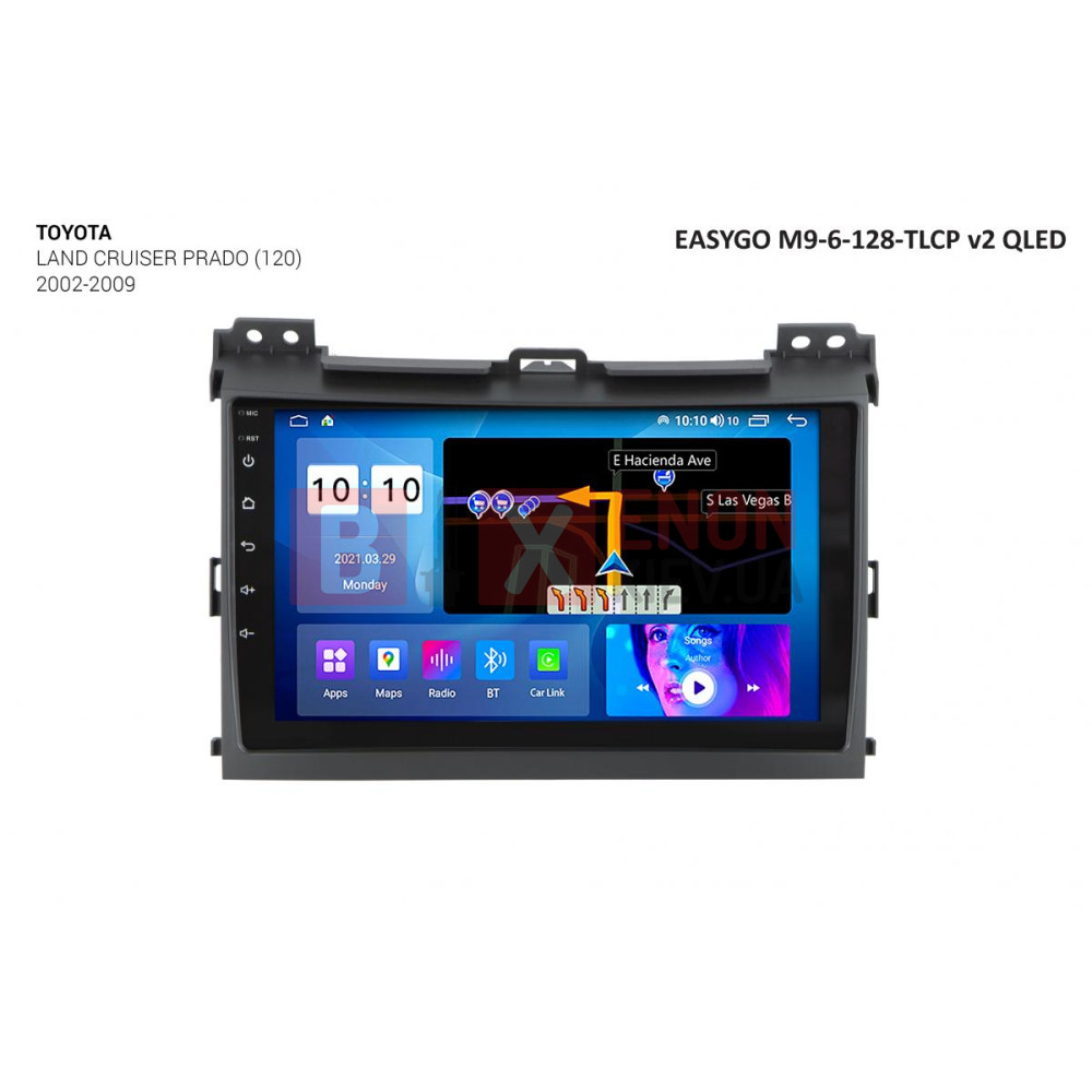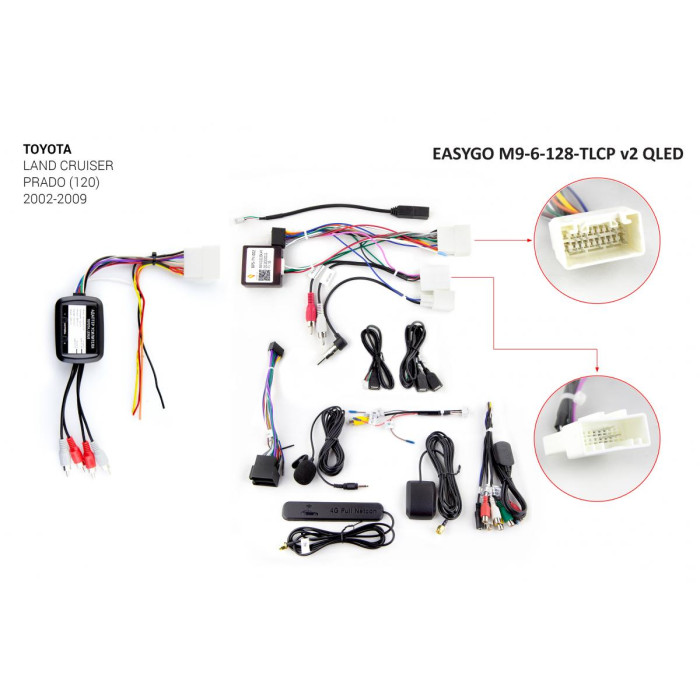 Штатная мультимедийная система EasyGo M9-6-128-TLCP v2 QLED предназначена для установки в автомобиль Toyota Land Cruiser Prado (120) 2002-2009