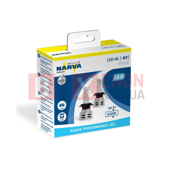 Світлодіодні лампи NARVA 18005 H7 6000 K застосовуються в освітленні ближнього та дальнього світла автомобіля, потужність лампи 24W, напруга 12/24 Вольт з білим відтінком світіння.