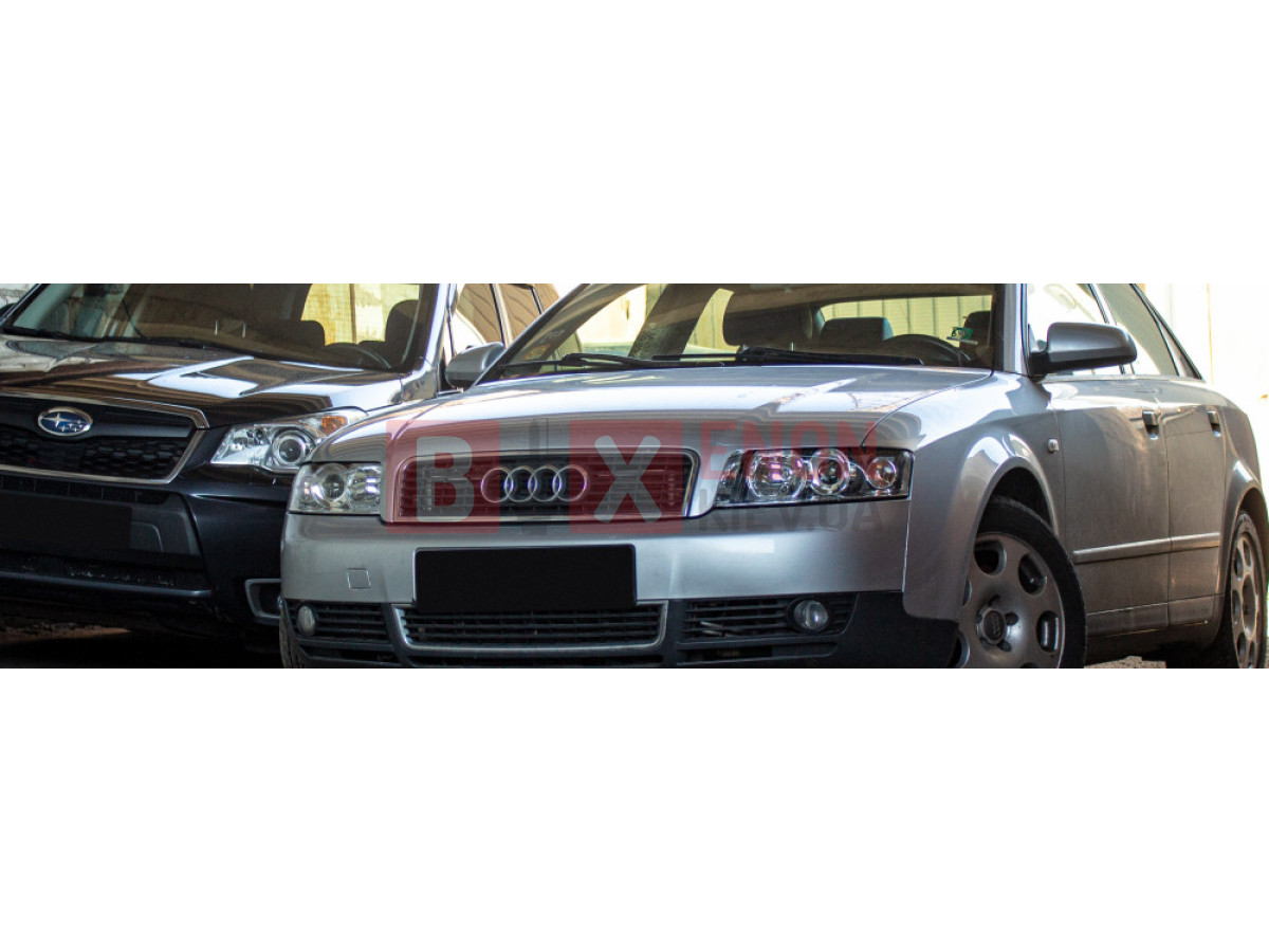 AUDI A4 B6 с 2001 по 2006 год замена штатных галогеновых монолинз на биксеноновые линзы Q5 3.0 дюйма