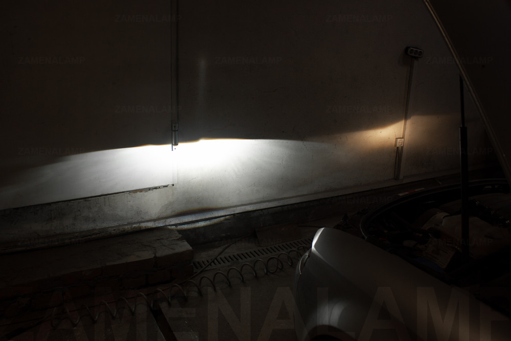Свет автомобиля после замены штатных галогеновых моно линз в сумерках