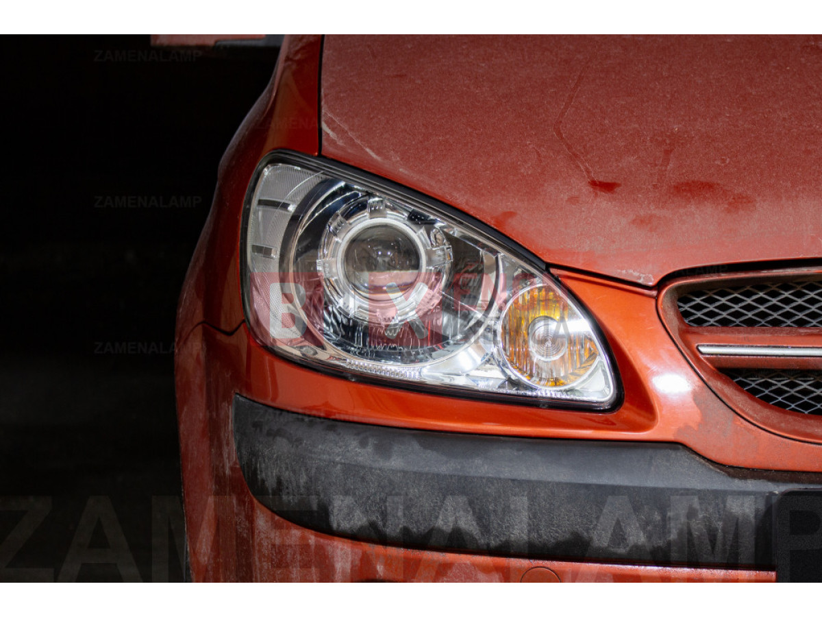 HYUNDAI GETZ с 2005 по 2011 год установка комплекта Светодиодных Bi-Led линз 3.0 дюйма в рефлекторную оптику фар автомобиля