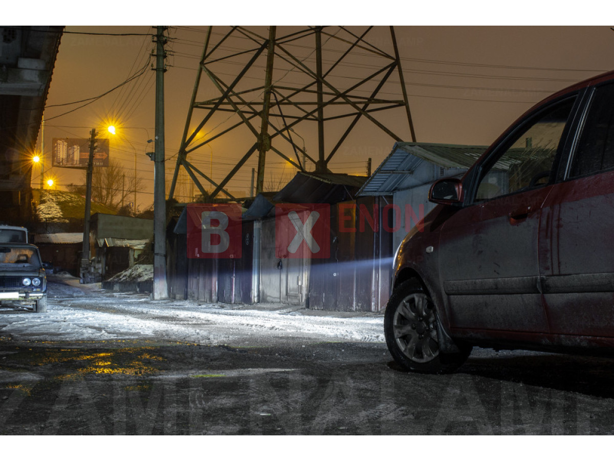 Свет фар автомобиля после установки светодиодных Bi-Led линз в рефлектор (отражатели)