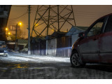 Пример Свет фар автомобиля после установки светодиодных Bi-Led линз в рефлектор (отражатели) на дорожном полотне при плохих погодных условиях