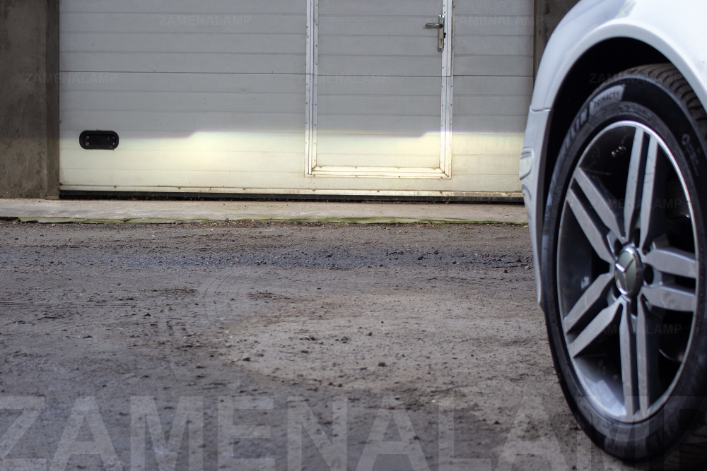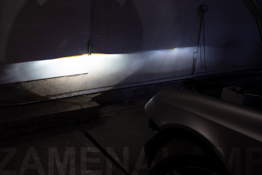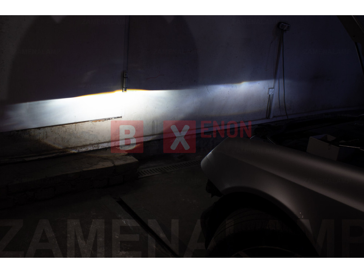 Свет фар автомобиля после проведения работ по замене штатных ксеноновых монолинз в светлое время суток