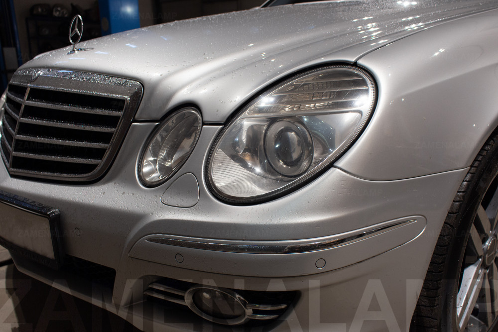 Mercedes-Benz E500 W211 с 2006 по 2009 год замена штатных ксеноновых линз