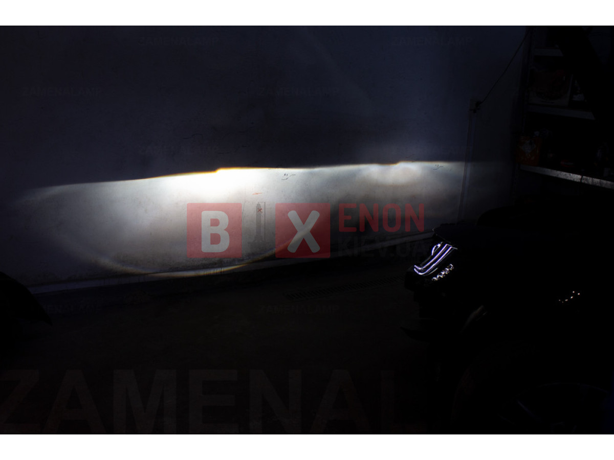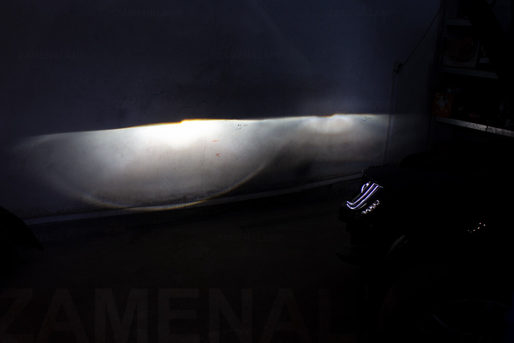 Результат света фар автомобиля после замены штатных ксеноновых линз в фарах автомобиля в светлое время суток.