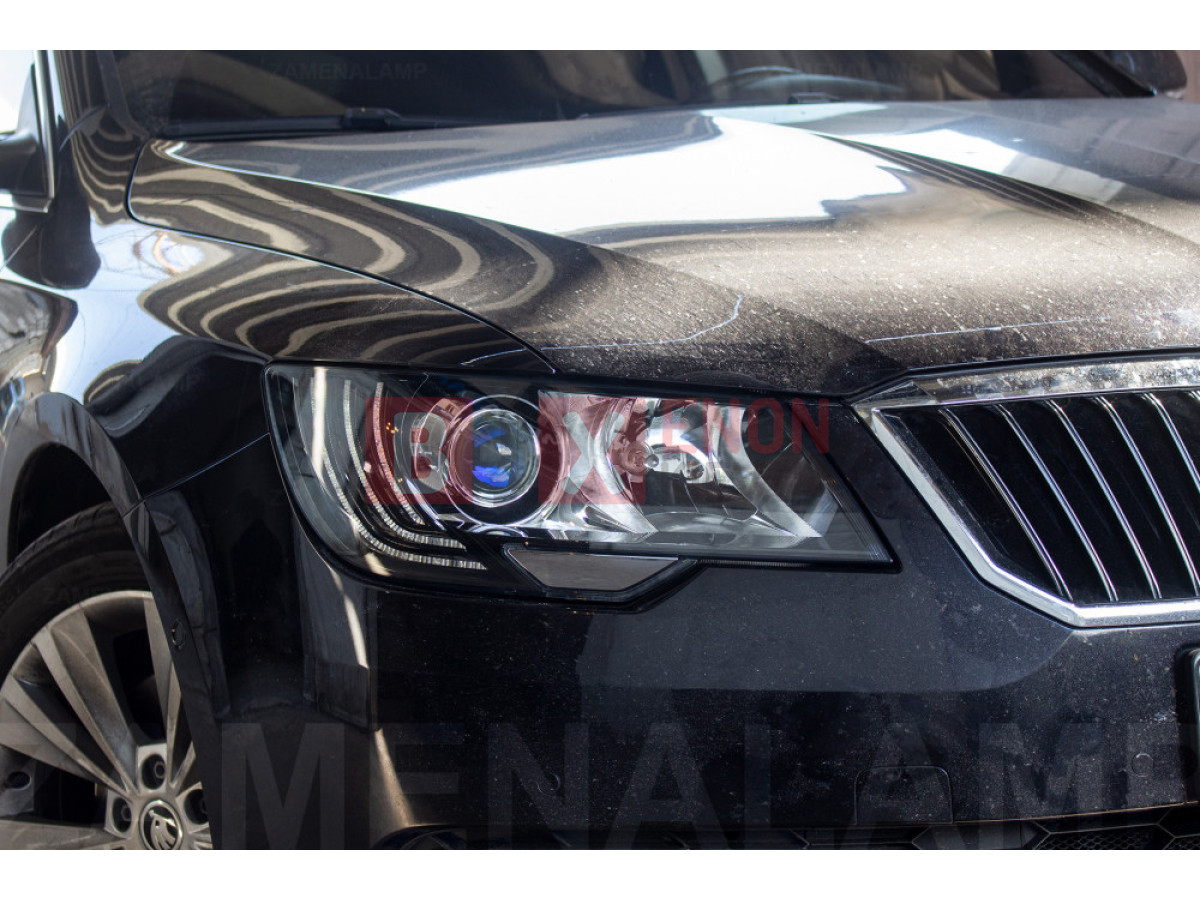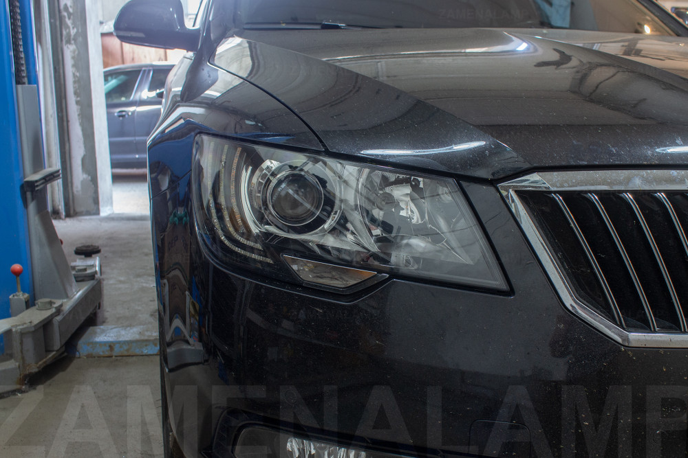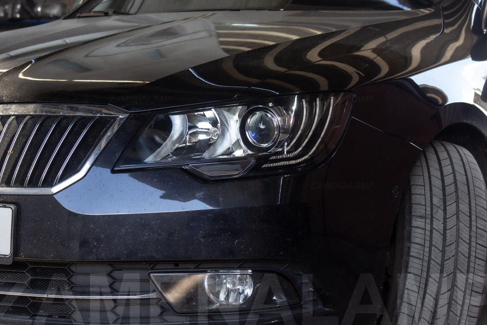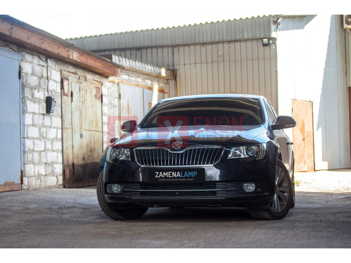 Улучшение света фар на автомобиле SKODA SUPERB MK2 (restyling) с 2013 по 2015 год путем замены штатных ксеноновых линз на комплект биксеноновых Hella 5 Blue