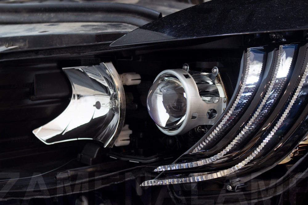 Закрепили новую биксеноновую линзу и отрегулировали горизонт светотеневой границы в штатной рамке крепления линзы.