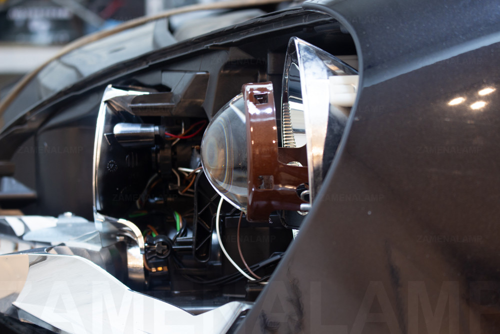 Закрепили биксеноновую линзу в отражателе ближнего света левой фары.