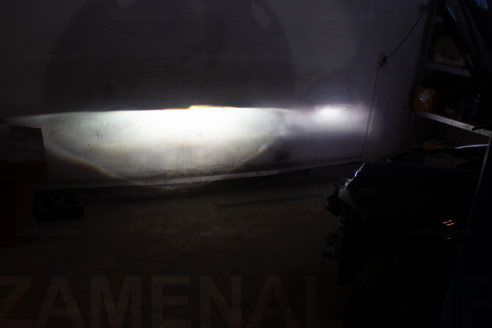 Справа штатный свет галогеновой фары, слева биксеноновая линза Hella 5.