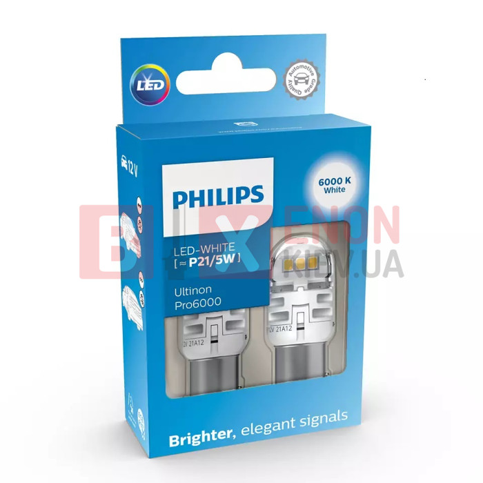 Комплект светодиодных ламп Philips 11499CU60X2 P21/5W LED Ultinon Pro6000 SI 12V BAY15d white – это модернизированные светодиодные лампы нового поколения, отличающиеся от предыдущих моделей своими характеристиками, мощностью, формой корпуса и потреблением энергии. При замене стандартных галогеновых ламп на светодиодные лампы Philips серии Ultinon Pro6000 не возникнет вопросов замены ламп, ведь лампы совместимы с большинством моделей автомобилей. Продлен срок эксплуатации: до 5000 часов, если нужны яркие и стильные автомобильные светодиодные лампы, но вы не хотите постоянно заменять перегоревшие лампы, светодиодные лампы Philips серии Ultinon Pro6000 подойдут 100%. Эргономичный дизайн ламп с тремя светодиодами в лампе Philips распространяющий свет в дополнительном освещении авто, имеющий широкий угол распространения луча свет всегда будет направлен туда, где нужно.