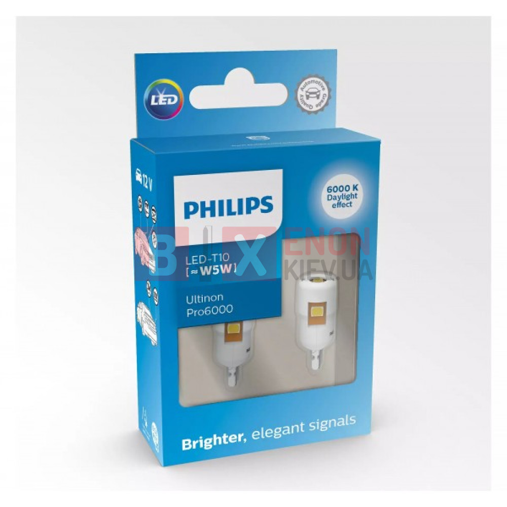 Комплект светодиодных ламп Philips 11961CU60X2 W5W (T10) LED white Ultinon Pro6000 SI 6000 K – это модернизированные светодиодные лампы нового поколения, отличающиеся от предыдущих моделей своими характеристиками, мощностью, формой корпуса и потреблением энергии. При замене стандартных галогеновых ламп на светодиодные лампы Philips серии Ultinon Pro6000 не возникнет вопросов замены ламп, ведь лампы совместимы с большинством моделей автомобилей. Продлен срок эксплуатации: до 5000 часов, если нужны яркие и стильные автомобильные светодиодные лампы, но вы не хотите постоянно заменять перегоревшие лампы, светодиодные лампы Philips серии Ultinon Pro6000 подойдут 100%. Эргономичный дизайн ламп с тремя светодиодами в лампе Philips распространяющий свет в дополнительном освещении авто, имеющий широкий угол распространения луча свет всегда будет направлен туда, где нужно.