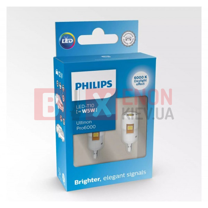 Комплект светодиодных ламп Philips 11961CU60X2 W5W (T10) LED white Ultinon Pro6000 SI 6000 K