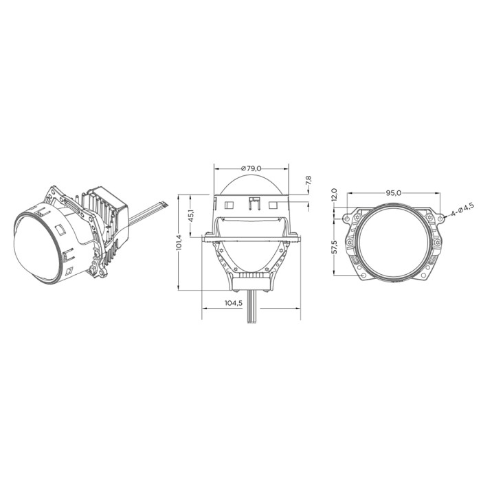 • Устанавливается вместо штатной линзы или на место лампы H4, H7, HB4