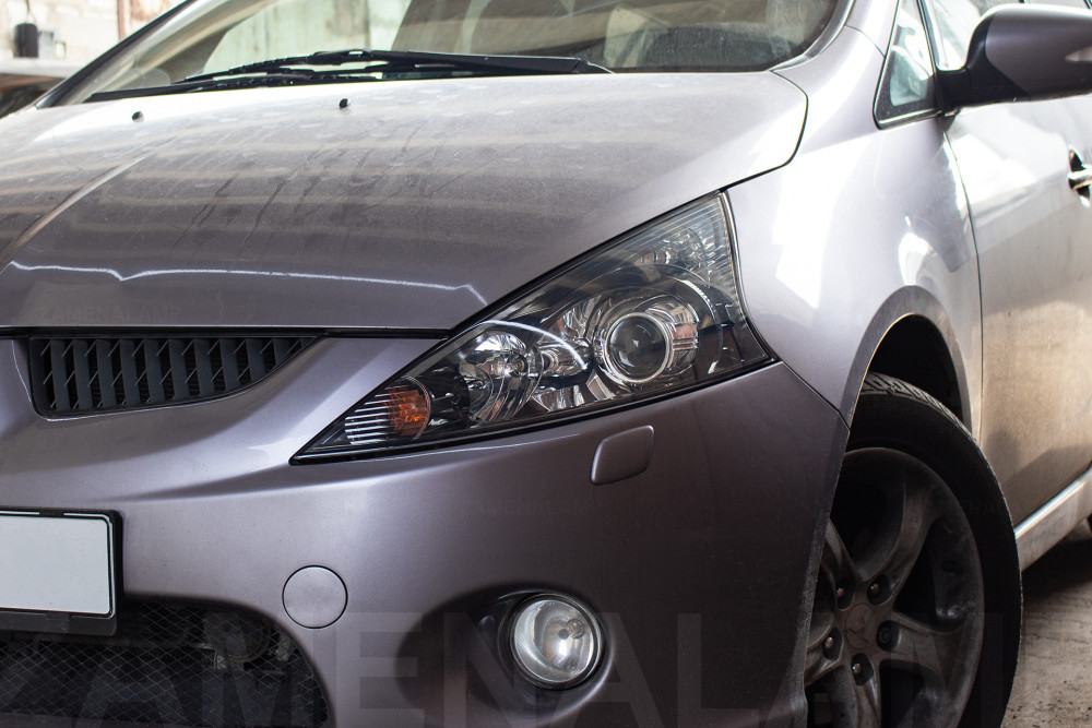 Улучшение света фар автомобиля MITSUBISHI GRANDIS с 2003 по 2011 год путем установки в рефлекторную оптику автомобиля комплекта биксеноновых линз Hella 5