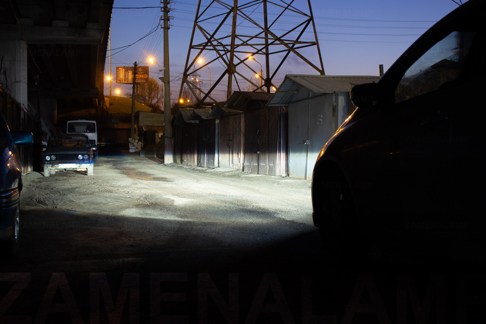 Свет автомобиля после установки биксеноновых линз Hella 5 в рефлекторную оптику автомобиля