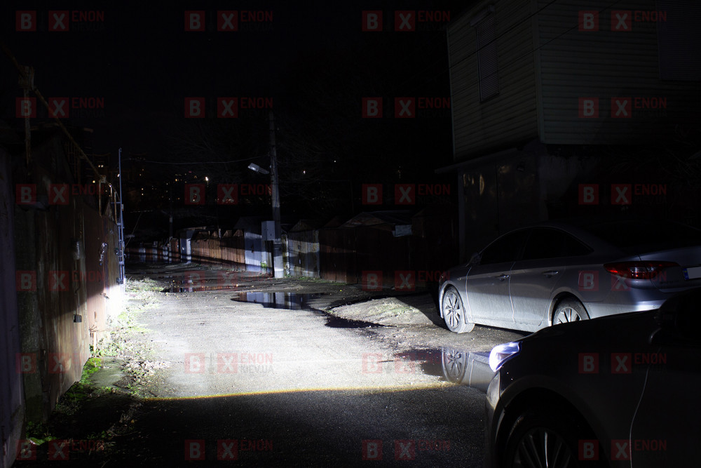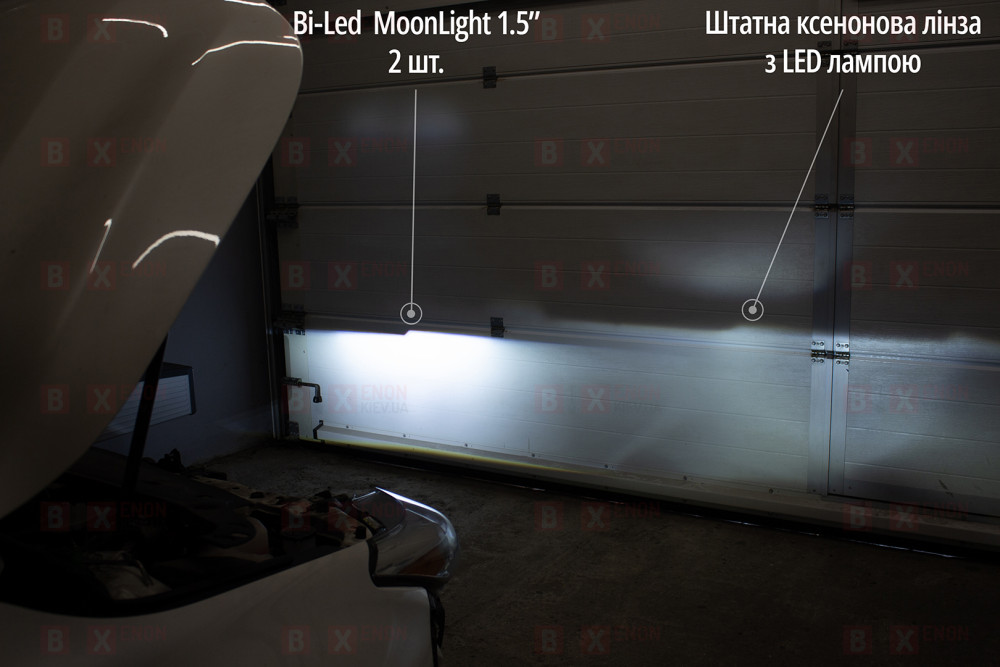 ◼️ Для лучшего отображения разности яркости фар между заводской ксеноновой фарой с ксеноновыми лампами цоколем D4S и установкой в фару автомобиля двух комплектов светодиодных Bi-Led модулей.
