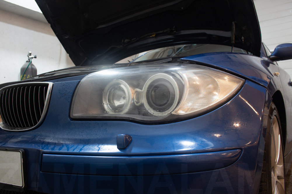 BMW E87 замена штатных линз на биксеноновые Q5