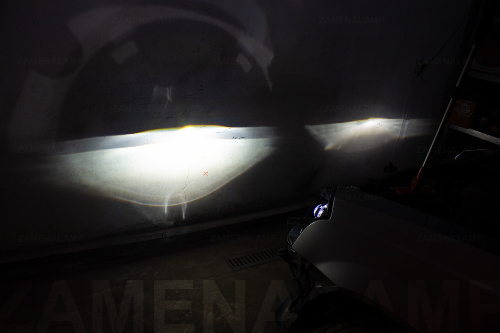 Справа штатная линза, слева две биксеноновые линзы Hella F1.