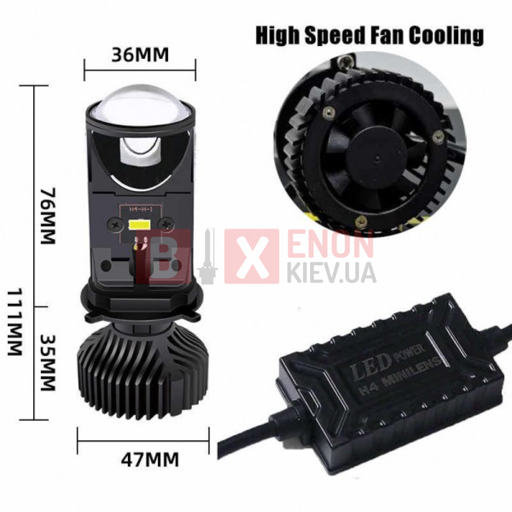 Светодиодные линзы HeadLight Y9D BI-LED H4 25/35W mini