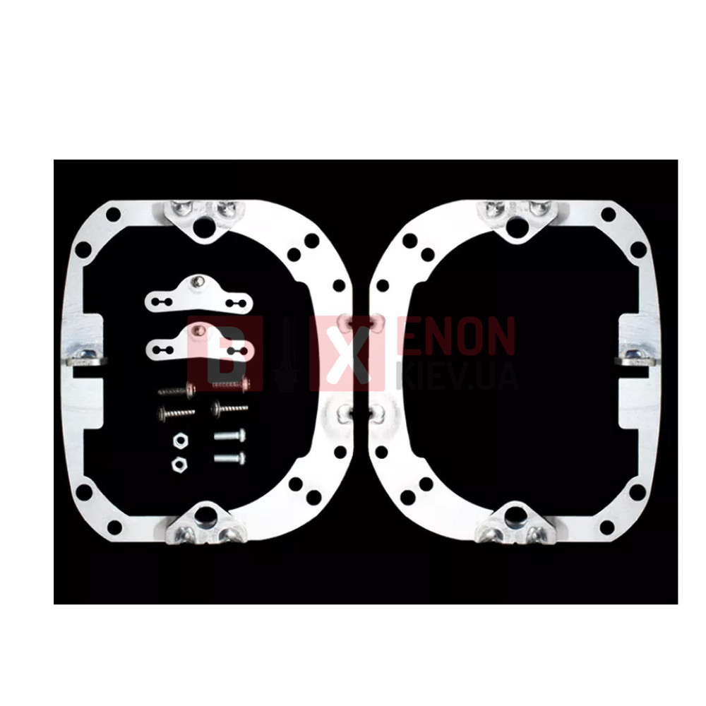 Комплект переходных рамок для замены линз для фар автомобиля значительно упрощает и ускоряет работу по установке или замене новых линз, сохраняет адаптивную функцию линз в фаре и максимально соблюдает все технические размеры и регулирует угол наклона фар автомобиля. При использовании переходных рамок линза становится на заводское место в фаре, соответственно сохраняется горизонт свечения и светотеневая граница свечения линз. Для некоторых автомобилей при использовании переходных рамок требуется минимальная доработка креплений между корпусом посадочного места штатных заводских линз и линз, которые нужно установить в фару автомобиля.