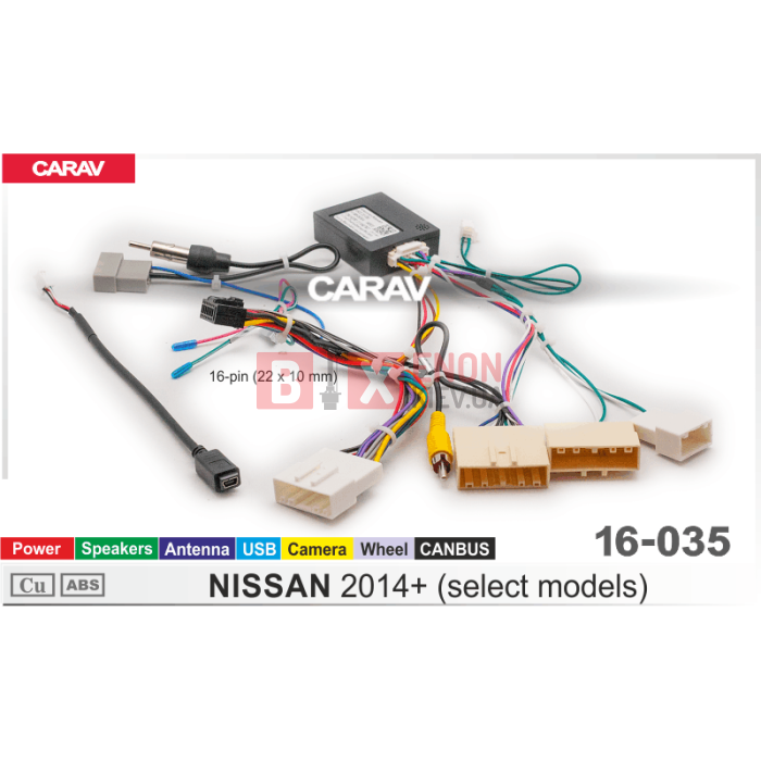 Комплект переходников 9" / 10.1" ANDROID-АВТОМАГНИТОЛ (16-pin) для NISSAN 2014+ (выборочн. модели) Питание + Динамики + Антенна + Камера + Руль + USB + CANBUS